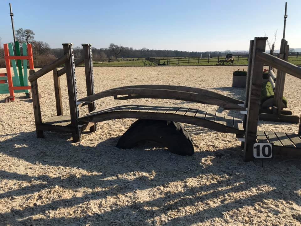Cross Country training course. This includes a range of fences. Most have a small or larger option. The smaller course is around 60cm and the larger between 80cm and 1m. (heights are approximate.)